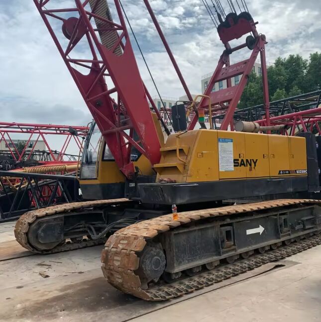 SANY SCC550A-6中古クローラークレーンは、2001~4000稼働時間を誇る優れた高効率リフティングマシンで、最大吊り上げ荷重55,000 kg、総重量55,000 kgという驚異的な性能を誇ります。中国湖南省発祥のこのクレーンは、現場での視認性を高める鮮やかな黄色を基調としており、その完璧な稼働状態は、重量物の吊り上げ作業に最適な選択肢となっています。