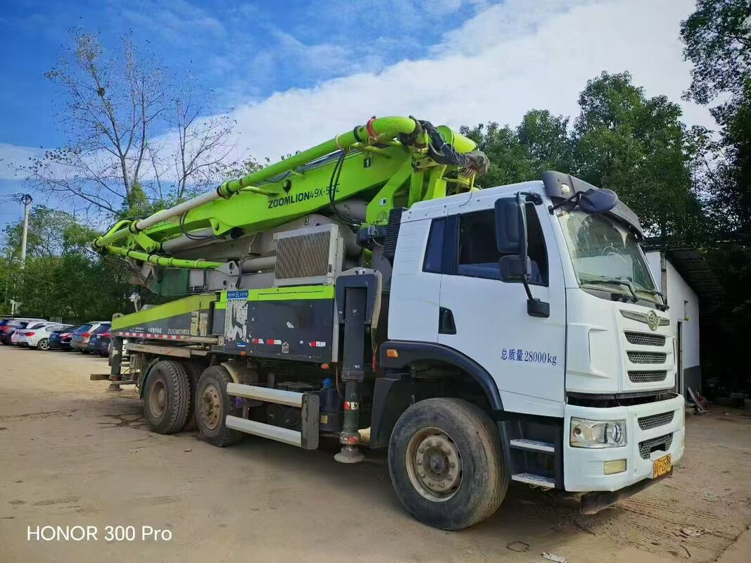 このトラック式コンクリートポンプ (モデル:ZLJ5280THBJE) は,ズームリオン重工業科学技術株式会社によって製造されています.2021年3月に生産され,シリアル番号は016396A1210010シャーシモデル CA5300THBPIK2T2BE5A81とエンジンモデル CA6DL1 - 32E5 (最大純電源: 2300 r/minで235 kW) で,最大垂直距離 42.3 m,水平距離 37.65 m を提供しています.,100/60 m3/hの理論コンクリート出力 8/15 MPaの圧力でコンクリートを出力する 28000 kgの総車両質量 27870 kgの横軸質量尺寸は10950mm*2550mm*3960mm.